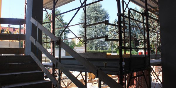 La palazzina si sviluppa pertanto solo sul piano terra e piano primo oltre a sottotetto senza permanenza di persone. L’ingresso alla palazzina è comune a tutte e due le unità immobiliari cosi’ come comune è il piano interrato in cui sono stati ricavati i posti auto, la centrale termica e i locali comuni. Nell’area prevista in asservimento viene realizzato un giardino mentre nell’area in cessione vengono realizzati dei parcheggi ad uso pubblico.